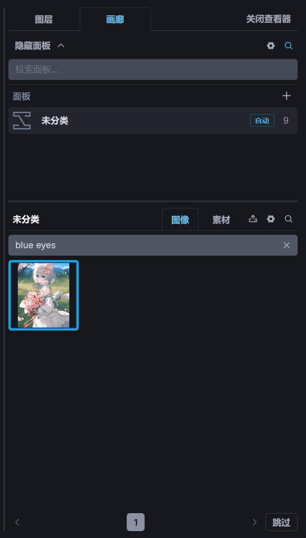 画廊支持对图片进行分类,当图片数量过多时,可以创建不同的分类对图片进行分类存放,点击面板选项里的+号可以创建新的分类,将鼠标移动到分类面板的名称上将显示一个按钮用于修改名称。
