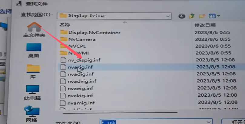 8.进入你解压的驱动文件夹里面选择Display.Driver文件夹的第一个用.inf结尾的文件