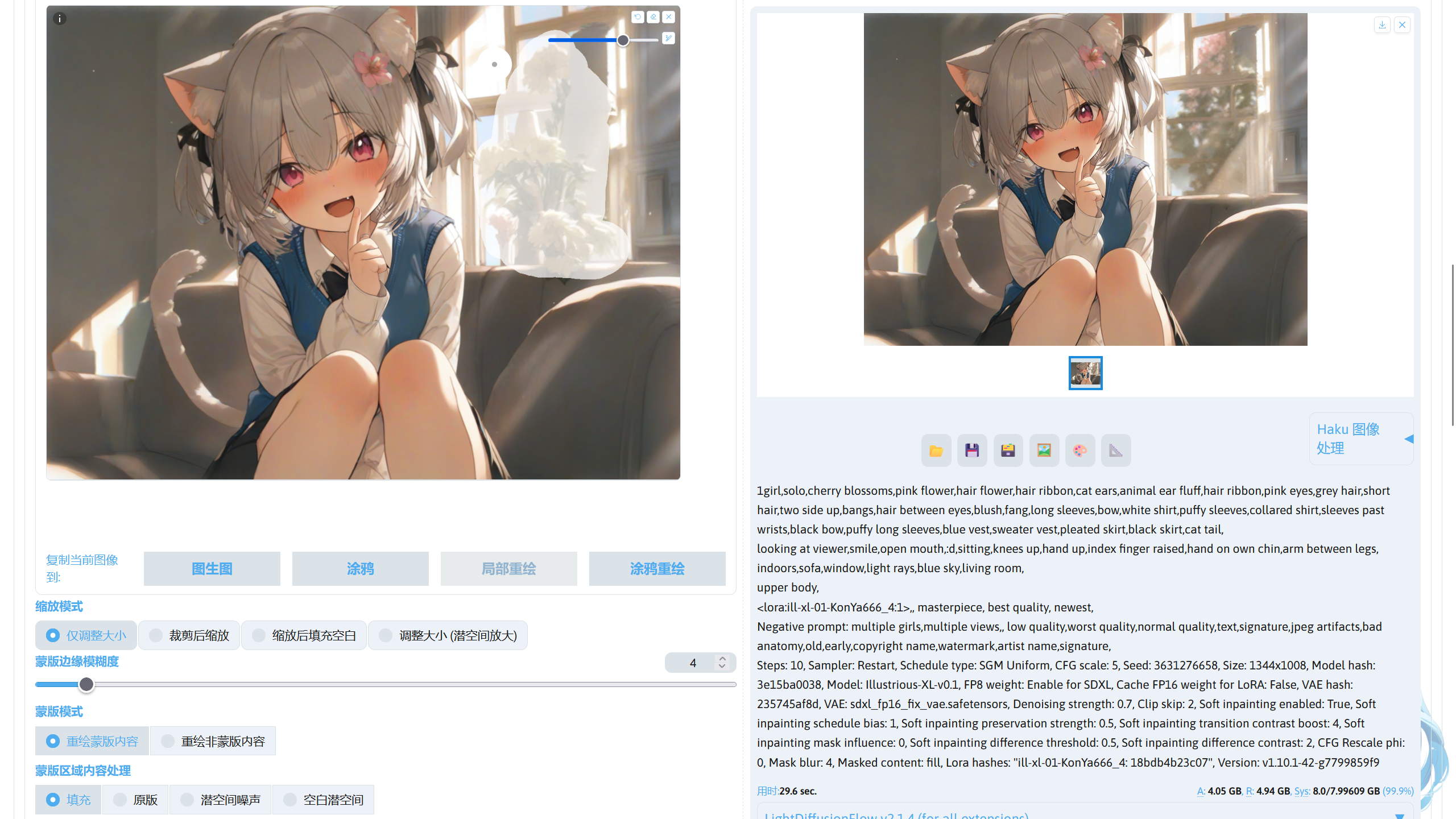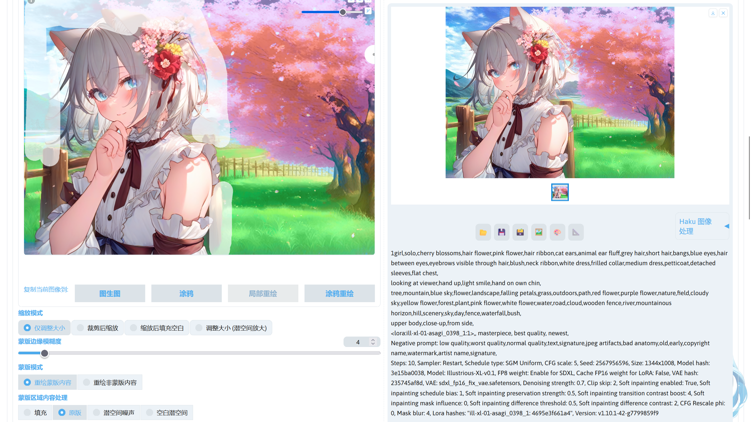 提示词中的画风 LoRA:ill-xl-01-asagi_0398_1(Civitai),模型放在stable-diffusion-webui/models/Lora。