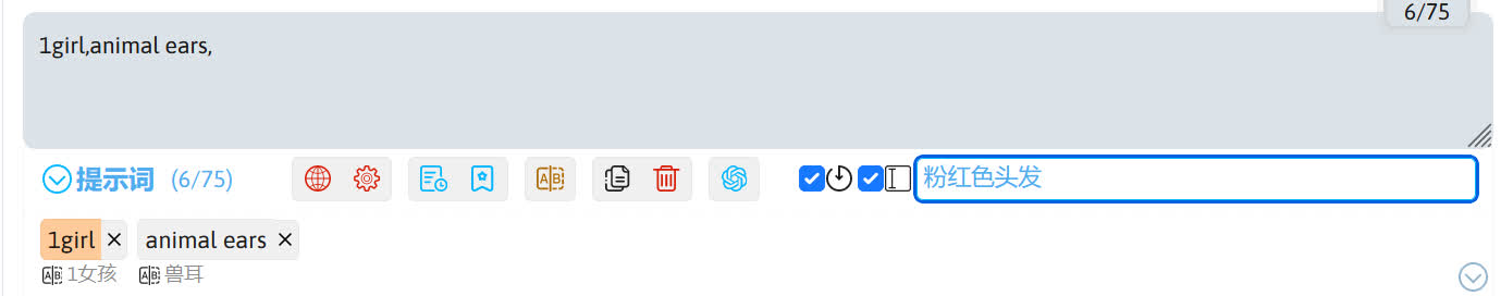 回车后中文被输入到提示词框中并自动翻译成英文。
