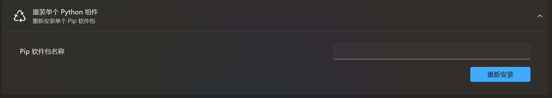 如果某个软件包出现了问题,则将输入该软件包的名称,并点击重新安装按钮。
